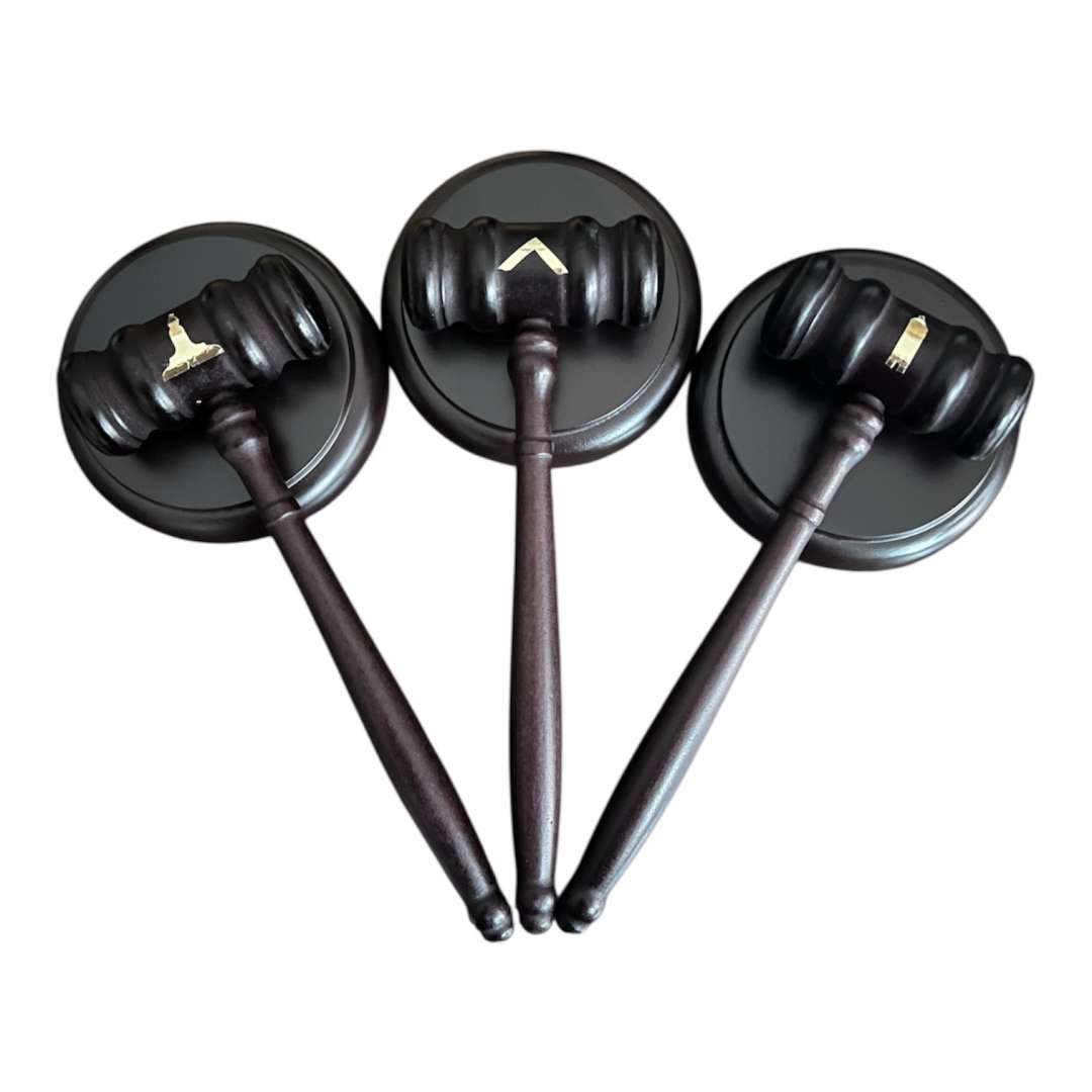 Set of three wooden gavels with the symbols of the three lights.
