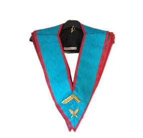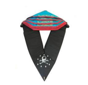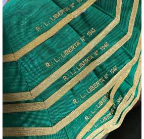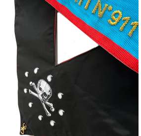 High quality Official Lodge Set, silk satin, mourning printed back. Width 11 cm. Hook to stop it at the collar of the jacket and hook to hang a jewel or a medal.